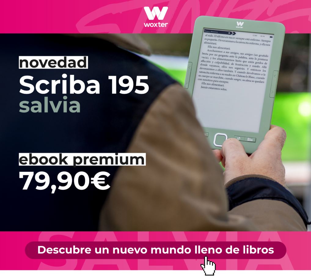 El Woxter Scriba 195 es un lector electrónico ligero y cómodo, diseñado para ofrecer una lectura nítida y sin reflejos incluso a plena luz del sol. Ahora está disponible también en el nuevo y elegante color Verde Salvia, aportando un toque actual y diferencial.