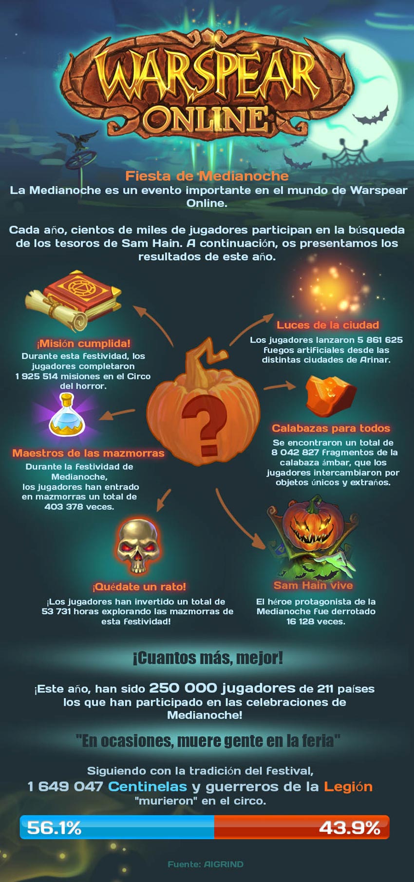 Este año, más de 250 000 jugadores han participado en la celebración de La Fiesta de Medianoche – un increíble record tras seis años de vida del juego. Puedes ver más información sobre el evento en esta infografía: