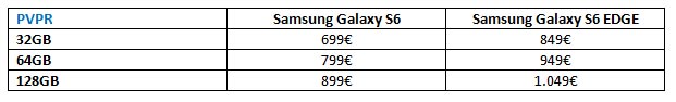 Mañana viernes 10 de abril se pone a la venta el nuevo Samsung Galaxy S6 con los siguientes PVPR confirmados: