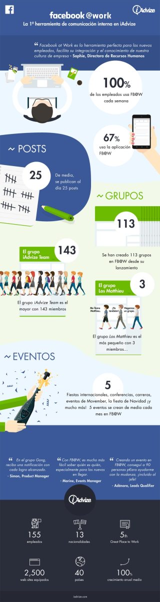 infografia_iadvice_fb-at-work Publicado 21 enero, 2016 en 800 × 3001 en Más del 90% de los empleados de iAdvize utilizan cada día Facebook at Work