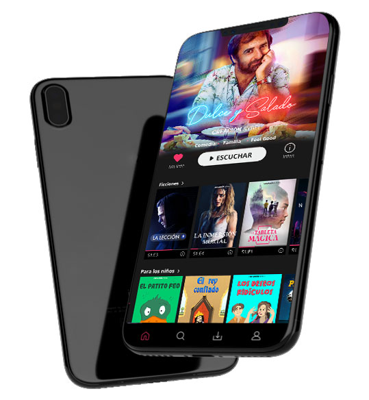 La compañía apuesta principalmente por contenidos exclusivos de producción propia y otros seleccionados entre los mejores del universo del audio narrativo, así como por formatos de audio innovadores, con sensacionales efectos sonoros y actores y lectores profesionales, que ofrecen una experiencia auditiva inmersiva y de gran atractivo para todo tipo de públicos.