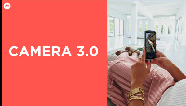 La aplicación de la cámara actualizada se introdujo en el nuevo motorola razr 5G, que cuenta con la cámara selfi más avanzada del mercado y que, además, estará también disponible en futuros dispositivos. La interfaz de usuario ha sido desarrollada para ser más flexible y adaptable a la tendencia de pantallas grandes. La nueva Cámara 3.0 fue creada con cinco principios básicos de diseño y un acceso más fácil a todas las características: