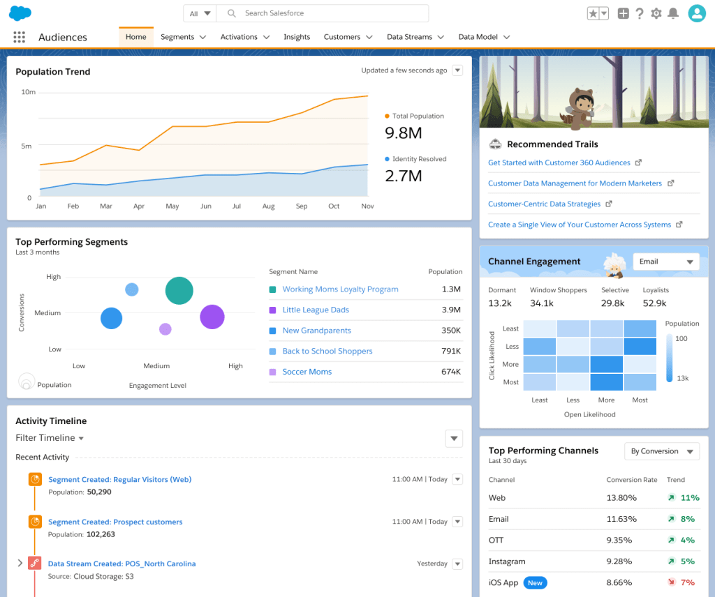 · Digital 360 for Healthcare: Los nuevos Patient Journeys preconfigurados, impulsados por Marketing Cloud, ofrecen a los proveedores un mayor conocimiento de los diferentes grupos de pacientes, lo que conduce a un mayor compromiso y a mejores resultados sanitarios. Con el Patient Journey, los pacientes reciben una experiencia de marketing de alto nivel una vez que se han unido a una nueva práctica de salud, con acceso a la información más relevante en el momento adecuado.