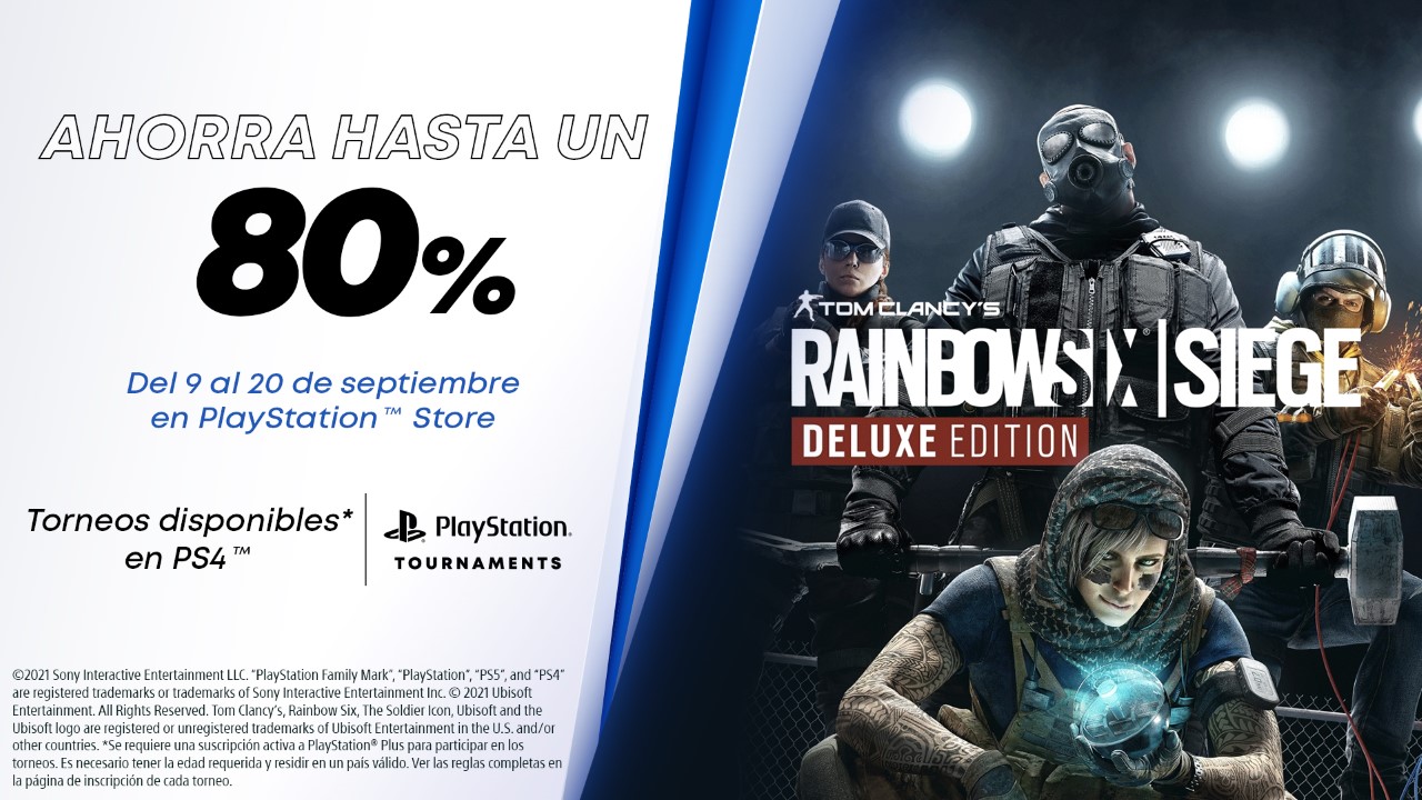 Sony Interactive Entertainment (SIE) anuncia la incoporación de Rainbow Six® Siege a los PS4™ Tournaments: Open Series, que además cuenta con descuentos en las diferentes ediciones de Rainbow Six® Siege en PlayStation™Store hasta el 20 de septiembre. * Se requiere una suscripción activa a PlayStation® Plus para participar en los torneos. Es necesario tener la edad requerida y residir en un país válido. Ver las reglas completas en la página de inscripción de cada torneo.