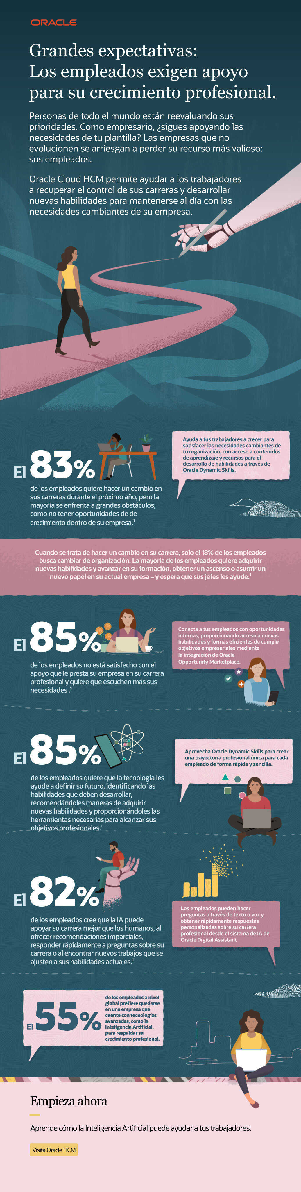 Las personas recurren a la inteligencia artificial para que les ayude a desarrollarse profesionalmente, después de que la pandemia por la COVID-19 las aislara y desvinculara de sus propias vidas, según un nuevo estudio de Oracle y Workplace Intelligence, una empresa de investigación y asesoramiento en recursos humanos. El estudio, realizado con más de 14.600 empleados, managers, directores de recursos humanos y ejecutivos de alto nivel de 13 países, revela que las personas han sentido en todo el mundo que su vida personal y profesional se ha estancado, pero que están dispuestas a retomar el control de su futuro.