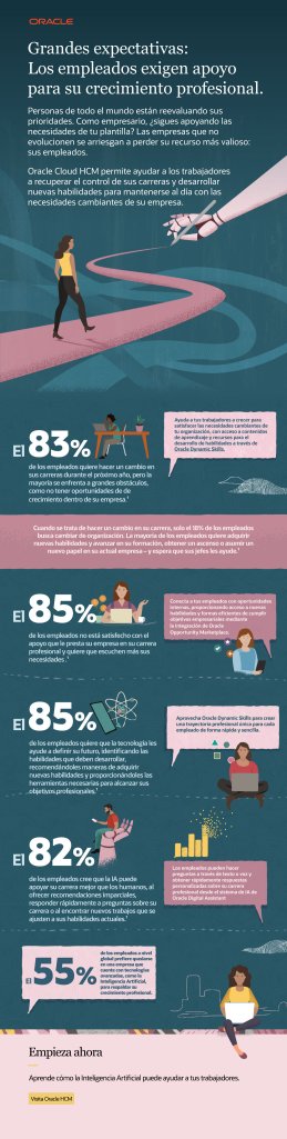 “El último año ha marcado un punto de inflexión para el futuro del trabajo. Sorprendentemente, entre el estrés, la ansiedad y la soledad provocados por la pandemia global, los empleados encontraron su voz, se empoderaron y ahora defienden lo que quieren”, afirma Alén Fernández, director del negocio de Oracle Cloud HCM. “La naturaleza cambiante del lugar de trabajo ha transformado la concepción del éxito y ha restablecido las expectativas de las personas sobre cómo las organizaciones pueden apoyarlas mejor. Para atraer y retener el talento, las empresas deben dar mayor prioridad a ayudar a sus empleados a identificar y desarrollar nuevas habilidades, y proporcionarles itinerarios profesionales personalizados para que puedan retomar de nuevo el control de sus carreras”.