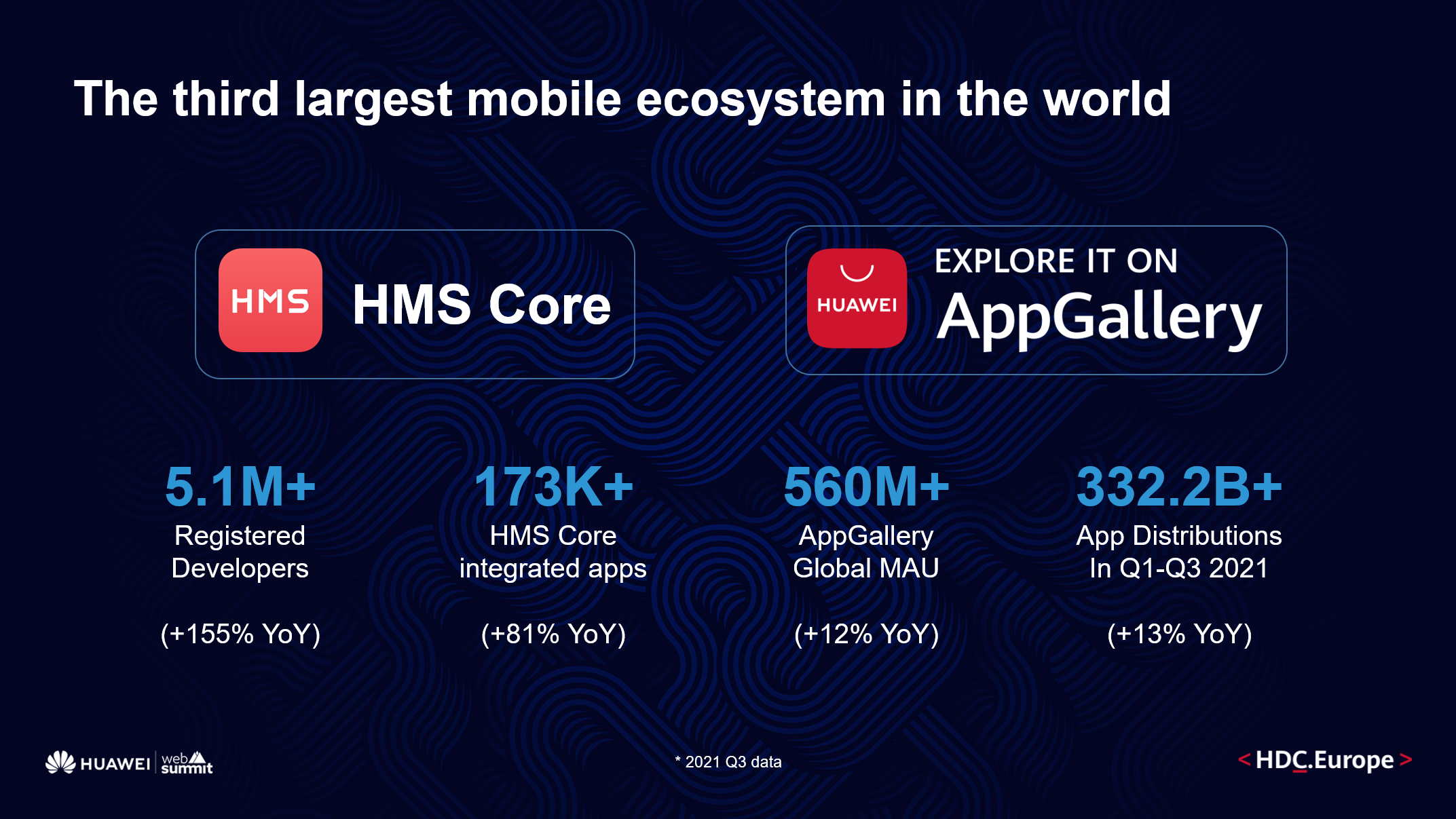 HUAWEI Mobile Services (HMS), parte de la compañía tecnológica líder mundial Huawei, celebró recientemente su conferencia anual de desarrolladores (HDC.Europe) en el contexto del reconocido Web Summit 21 que ha tenido lugar en Lisboa. Más de 300 desarrolladores y líderes empresariales se reunieron para debatir sobre los recientes desarrollos empresariales de HUAWEI Mobile Services, así como sobre las futuras actualizaciones de sus servicios y el creciente apoyo a la innovación en el sector.
