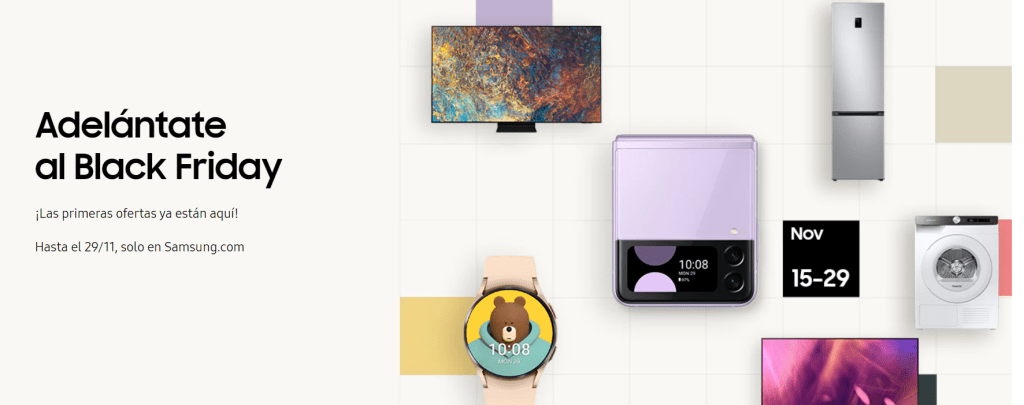 Samsung Electronics co., Ltd., se adelanta al Black Friday 2021 por tercer año consecutivo. Desde el pasado lunes 15 de noviembre dispone de promociones en su página web en dispositivos Galaxy, televisores, barras de sonido, monitores y electrodomésticos.