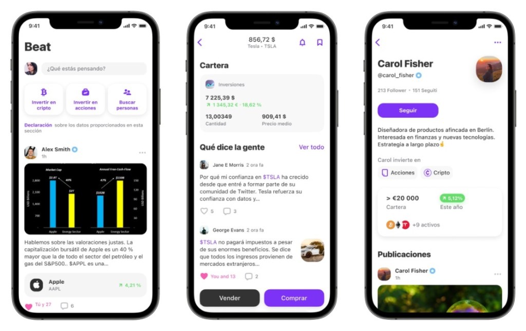Estas publicaciones de la comunidad se muestran ya en la nueva categoría «Vivid Beat» dentro la pestaña “Invierte” en la app, así como en la página dedicada al activo correspondiente, ya sea una acción, un ETF, una criptodivisa o un metal precioso. Así, los inversores pueden ver todo, desde la información de precios del activo hasta las noticias, pasando por los análisis, los artículos editoriales de Vivid y, ahora también, los posts de la comunidad. Asimismo, en el perfil «Vivid Beat» del usuario, se puede visualizar información adicional sobre su cartera personal y su rendimiento hasta la fecha.