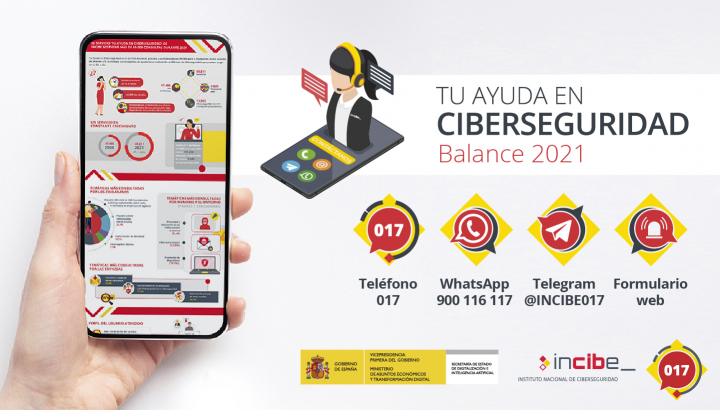 El servicio ‘Tu Ayuda en Ciberseguridad’ de INCIBE, entidad dependiente del Ministerio de Asuntos Económicos y Transformación Digital, a través de la Secretaría de Estado de Digitalización e Inteligencia Artificial, atendió 69.211 consultas a través del 017 y de sus diferentes canales de contacto, durante el año 2021. En concreto, 47.485 por vía telefónica; 13.902 a través de los canales de chat de WhatsApp (900 116 117) y Telegram (@INCIBE017), puestos en marcha en mayo del pasado año; y 7.824 mediante el formulario web. Este servicio, gratuito y confidencial, en horario de 9 de la mañana a 9 de la noche los 365 días del año, está gestionado por profesionales que ofrecen asesoramiento técnico, psicosocial y legal, dependiendo de la temática de la consulta.