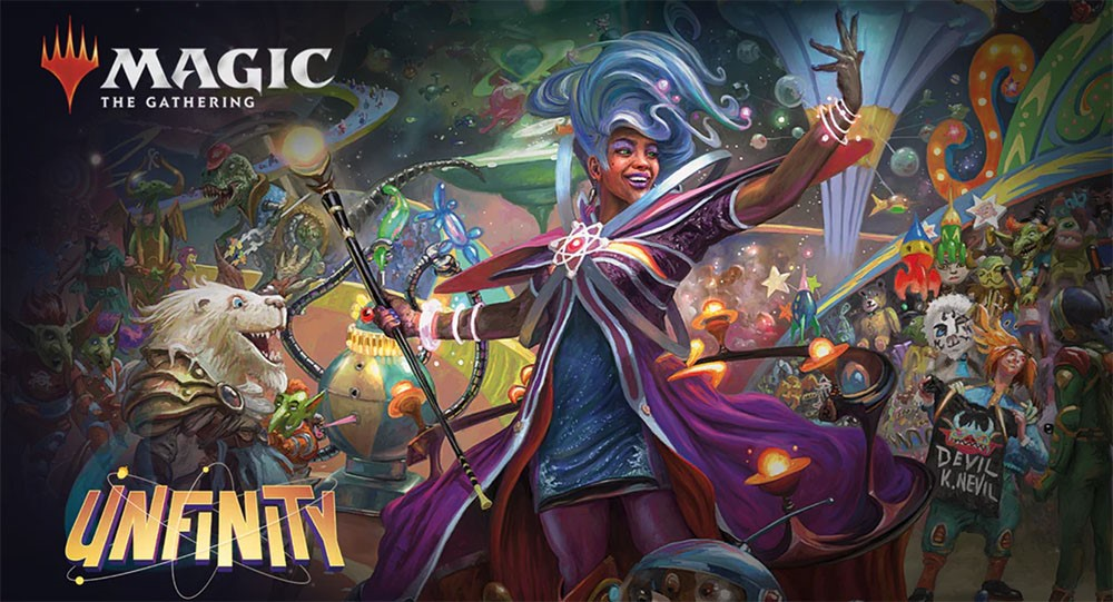 ¡Acercaos todos! Wizards of the Coast ha anunciado hoy el lanzamiento de Unfinity, la nueva colección del mejor y más antiguo juego de cartas coleccionables del mundo, Magic: The Gathering (MTG). Unfinity es el primer UN-set con borde negro en lugar del plateado tradicional que sumerge a los jugadores en un carnaval de ciencia-ficción de proporciones cósmicas, con nuevas y divertidas mecánicas. El set contiene 244 cartas y se lanza hoy mismo.