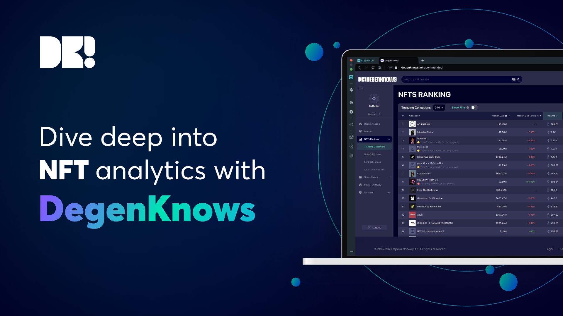 Opera, la compañía del primer navegador especializado en Web3 del mundo, Opera Crypto Browser, anuncia el lanzamiento de DegenKnows.io, su nueva herramienta de análisis de NFT que ayuda a los usuarios a descubrir, rastrear y verificar los coleccionables digitales, evitando caer en estafas.