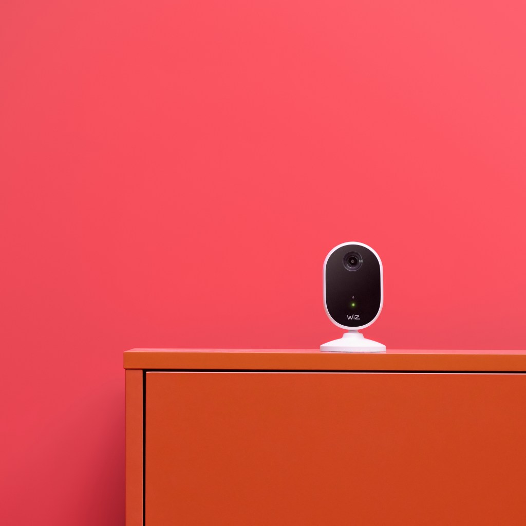 Un elemento importante de la nueva propuesta de monitorización del hogar es la Cámara Interior WiZ, que ayuda a crear un entorno seguro en casa. Permite controlar y ver lo que está sucediendo en todo momento, y notifica cualquier movimiento o sonido sospechoso. Tan pronto como se reciba una notificación, se puede abrir la aplicación WiZ para obtener una visión en directo de lo que está pasando.