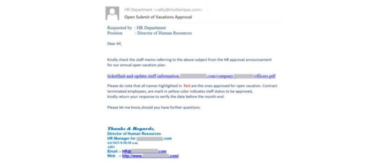 El phishing y las estafas suponen uno de los riesgos más importantes para las empresas durante el verano, ya que los ciberdelincuentes engañan a los empleados para que divulguen información confidencial. Estas técnicas incluyen páginas falsas de servicios de gestión de vacaciones diseñadas para que los empleados más desprevenidos caigan en su trampa.