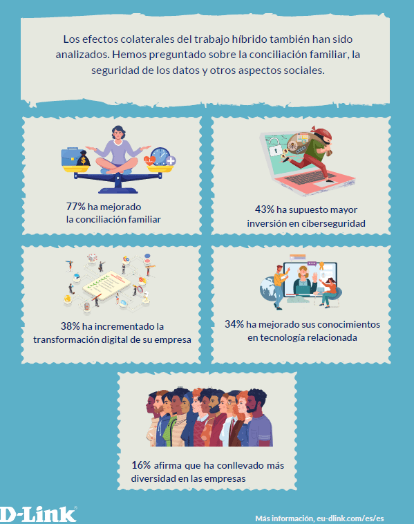 Según la investigación de D-Link, El 40% de los encuestados reveló que trabajar desde casa durante más de dos días a la semana no tuvo ningún impacto negativo en su productividad, mientras que un 35% opina que mejora la productividad y un 25% afirmó que puede disminuir la productividad.
