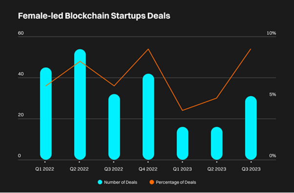 Durante el primer trimestre de 2022 hasta el tercer trimestre de 2023, las startups de blockchain enfrentaron una significativa disminución del 70,1% por trimestre en la recaudación de fondos, alcanzando un total de 27.850 millones de dólares. No obstante, las empresas lideradas por mujeres solo lograron captar el 6,34% de esta financiación, destacando una marcada disparidad en el acceso a recursos según el género. Esta es la principal conclusión del informe de Bitget, el exchange de criptomonedas y empresa Web3 líder, sobre las diferencias en los patrones de inversión entre las startups de blockchain lideradas por hombres y mujeres.