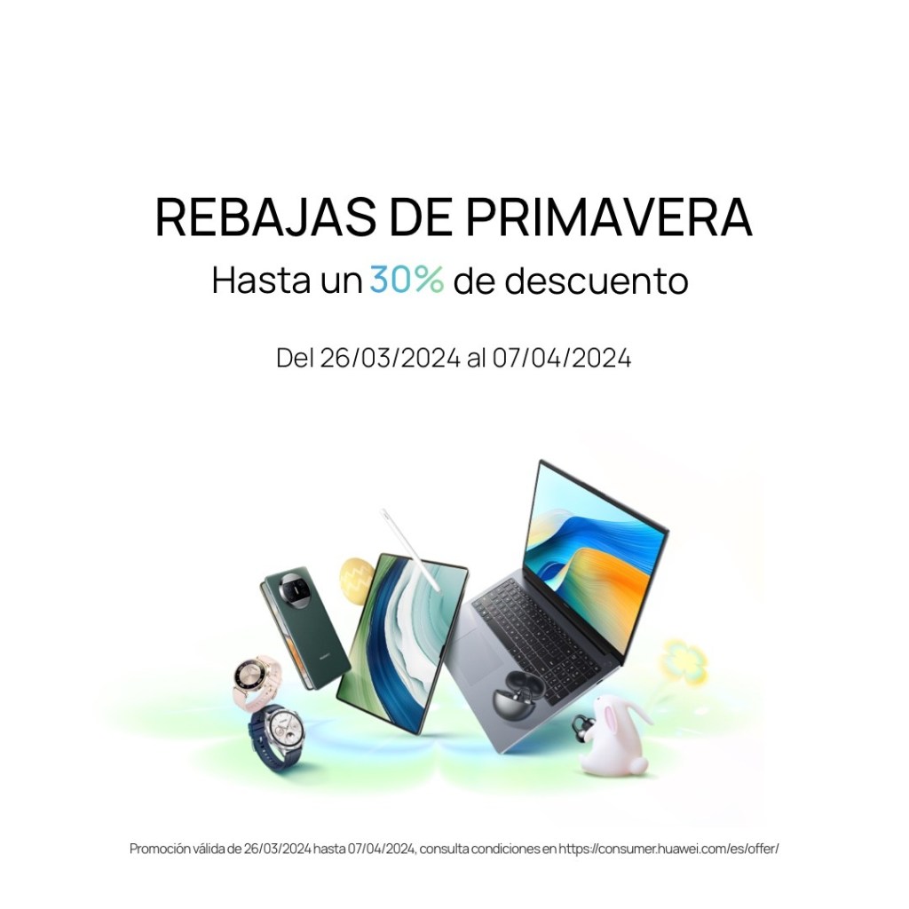 La subida de las temperaturas y la luz solar hasta últimas horas de la tarde son algunos de las señales de la llegada de la primera. Gracias a ellas, nos sentimos más activos y nos dan ganas de retomar buenos hábitos y pasar más tiempo al aire libre. Así, los mejores aliados para disfrutar de esta nueva estación son los dispositivos Huawei que ayudan a los usuarios a disfrutar mientras sacan el máximo partido a su tiempo de ocio y entretenimiento, entrenamiento y productividad. Por este motivo, Huawei Consumer Business Group (CBG) lanza sus Rebajas de Primavera: exclusivos descuentos de hasta el 30% para adquirir productos de todo tipo, desde smartphones, wearables o portátiles, hasta dispositivos de audio y muchos otros productos de la marca a través de Huawei Store, desde ayer, 26 de marzo, hasta el día 7 de abril.