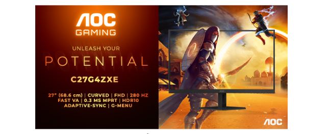 AGON by AOC, una de las marcas líderes mundiales en monitores gaming y accesorios informáticos, presenta el AOC GAMING C27G4ZXE, un monitor curvo Full HD de 27 pulgadas (68,6 cm) que supera los límites de los juegos inmersivos y de alta frecuencia de refresco. El nuevo C27G4ZXE, que forma parte de la nueva gama de monitores gaming G4 anunciada este año, cuenta con un elegante diseño angular inspirado en los «stealth-fighter», una curvatura 1500R y una impresionante frecuencia de actualización de 280 Hz, lo que lo convierte en la elección perfecta para que los jugadores disfruten de títulos que van desde juegos de acción y RPG basados en historias hasta títulos de carreras, simulación o shooter de ritmo rápido.