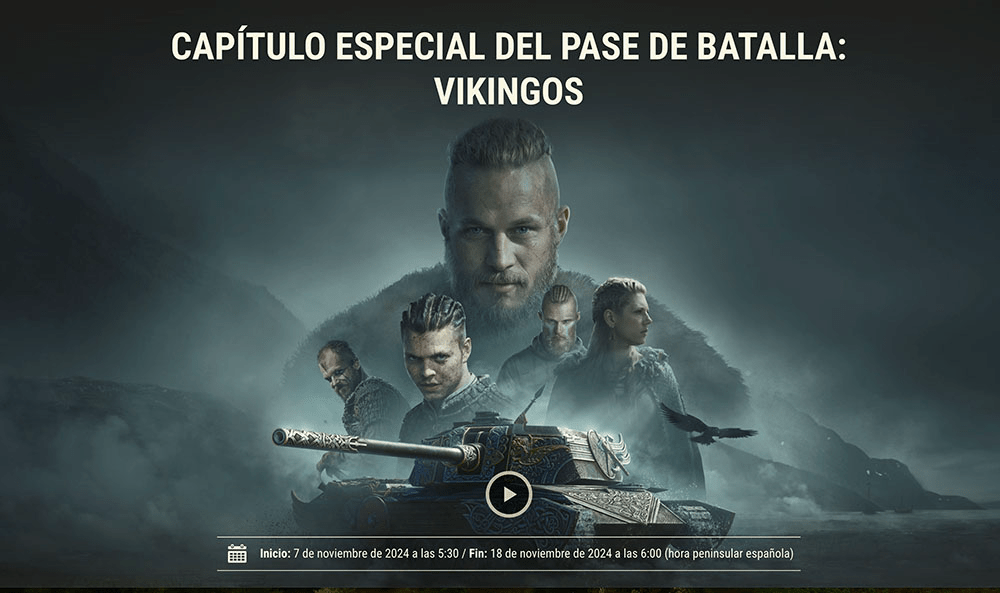Mientras los cuervos de Odín surcan el cielo, el choque de acero y el sonido de la batalla impregnan la atmósfera. ¡Ha llegado la hora! A partir del 7 de noviembre, el Capítulo especial del pase de batalla: Vikingos invita a los jugadores a embarcarse en un viaje épico inspirado en la popular serie de televisión Vikingos. Durante dos semanas, los jugadores liberarán a su vikingo interior para conquistar, junto a los icónicos personajes de la serie, el tesoro definitivo, un carro de combate vikingo: el tanque premium Felice de nivel IX.
