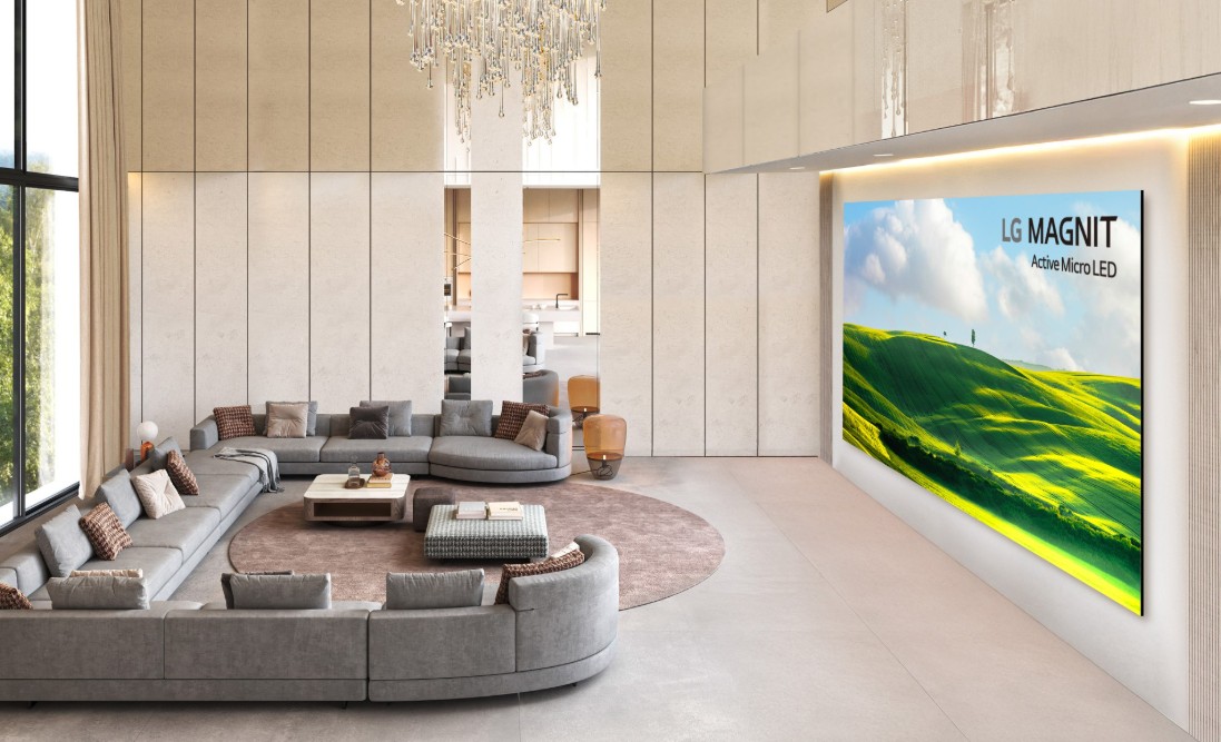 LG MAGNIT Active Micro LED, englobada dentro la gama premium MAGNIT de LG, ya está disponible en Corea, y pronto se podrá disfrutar en los principales mercados mundiales. Con un tamaño de 136 pulgadas (de aproximadamente 3 metros de ancho y 1,7 metros de alto), con una resolución 4K (3840 x 2160) y una extraordinaria relación de contraste de 1000000:1, ofrece una inmersión y un realismo visual incomparables.