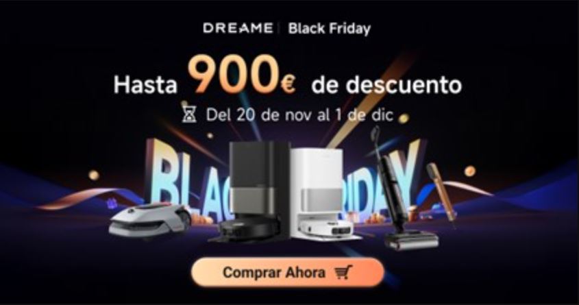 Dreame Technology, la marca de soluciones innovadoras para el hogar inteligente, comienza hoy su campaña oficial de Black Friday en España. Y es que, para dar la bienvenida a la temporada navideña, Dreame ofrecerá descuentos exclusivos de hasta 900 € en una amplia gama de sus productos más vendidos, alcanzando los precios más bajos del año en modelos seleccionados. Desde avanzados robots aspiradores y versátiles fregonas eléctricas, hasta aspiradores verticales de gran rendimiento e innovadores robots cortacésped, estas ofertas son la oportunidad perfecta para quienes desean llevar su hogar inteligente al siguiente nivel aprovechando el Black Friday.