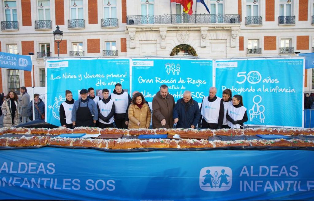 El tradicional Roscón de Reyes de Aldeas Infantiles SOS ha regresado esta mañana a la madrileña Puerta del Sol. En su 34º edición, la organización ha repartido 7.500 raciones de este dulce gigante, elaborado por Panaderías Orio, acompañadas de chocolate caliente entre las personas que transitaban por el centro de la capital. Con este evento, Aldeas quiere dar visibilidad a la infancia que no puede pasar estas fiestas con sus familias o se encuentra en riesgo de pobreza y exclusión social en nuestro país.