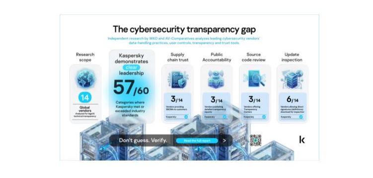 Kaspersky ha publicado hoy el informe Más allá de la detección Por qué la confianza y la transparencia marcan el futuro de la ciberseguridad, un nuevo libro blanco basado en una evaluación independiente de transparencia y responsabilidad realizada a 14 proveedores líderes de ciberseguridad. Kaspersky se ha posicionado como uno de los proveedores más transparentes evaluados, superando de forma constante los estándares del sector en materia de gestión de datos, confianza en la cadena de suministro y capacidades de verificación para clientes.
