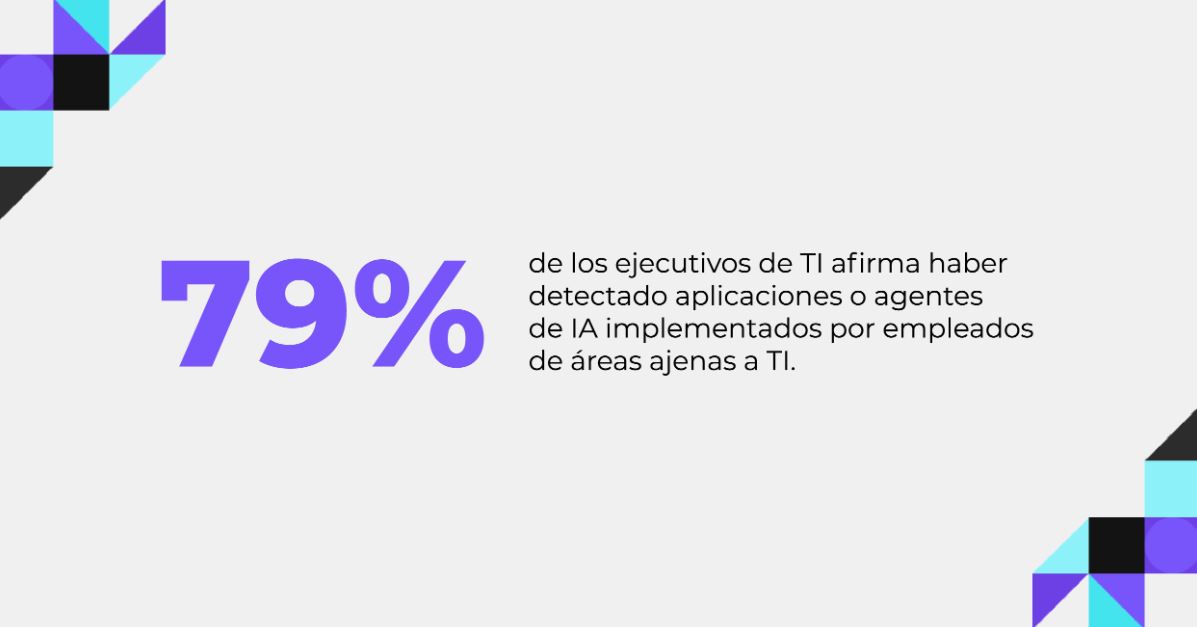 - Las tecnologías “invisibles” (shadow IT) están generando nuevos desafíos relacionados con la IA. El “shadow IT” o uso de hardware, software, aplicaciones o servicios sin la autorización, conocimiento o supervisión del departamento de tecnología ha acumulado más protagonismo con la irrupción de la IA. Así, el 79% de los encuestados afirma haber detectado aplicaciones o agentes de IA implementados por empleados de áreas ajenas a TI. Además, el 87% considera que el uso no autorizado de IA introduce riesgos, incluida la posible exposición de datos sensibles y propiedad intelectual. Esto pone de relieve la necesidad de reforzar la colaboración entre los equipos de TI y las diferentes áreas de negocio para garantizar que los despliegues de IA sean seguros, cumplan la normativa y estén alineados con los objetivos de la organización.