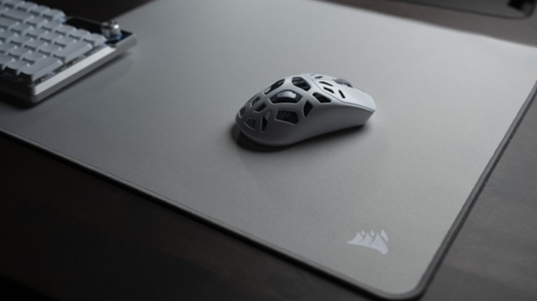 - MM Glass Large: la primera alfombrilla de cristal de CORSAIR y el buque insignia de la gama, con una superficie micrograbada de 0,2 μm, tratamiento mate de amortiguación del sonido y bordes esculpidos mediante CNC para ofrecer la máxima velocidad sin perder el control. Disponible en dos colores (negro y gris) en un tamaño de 400 mm × 500 mm.