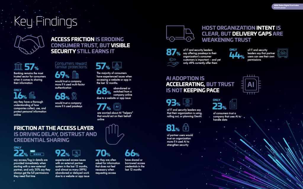 Thales Cybersecurity Productos, distribuido por Exclusive Networks, analiza la última edición del informe Digital Trust Index 2026, uno de los estudios globales más completos sobre la confianza digital que evalúa la opinión de más de 15.000 consumidores, partners comerciales y responsables de toma de decisiones en TI de trece sectores de mercado[i].