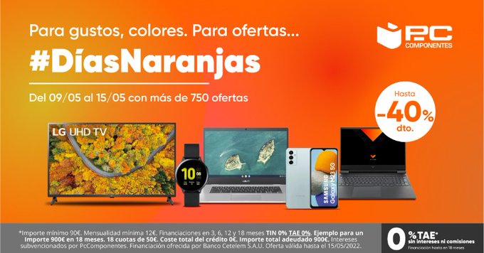 Con motivo de la llegada del otoño, PcComponentes, el ecommerce líder de tecnología e informática de origen español, anuncia sus Días Naranjas donde los usuarios podrán encontrar hasta 300 productos con descuentos de hasta el 60%. Esta campaña estará activa desde el 30 de septiembre hasta el 6 de octubre en