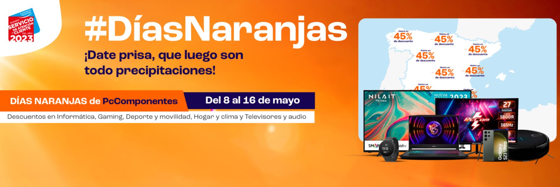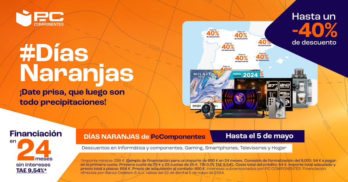 PcComponentes, el ecommerce español experto en tecnología, lanza su campaña de ofertas más esperada del otoño, los Días Naranjas. Desde hoy, y hasta el 12 de octubre, los usuarios podrán disfrutar de descuentos de hasta el 60% en una amplia selección de productos tecnológicos, perfectos para quienes quieran darle un giro a esa sensación de melancolía tan propia de la estación otoñal y convertirlo en pura emoción tecnológica al estrenar nuevos dispositivos.