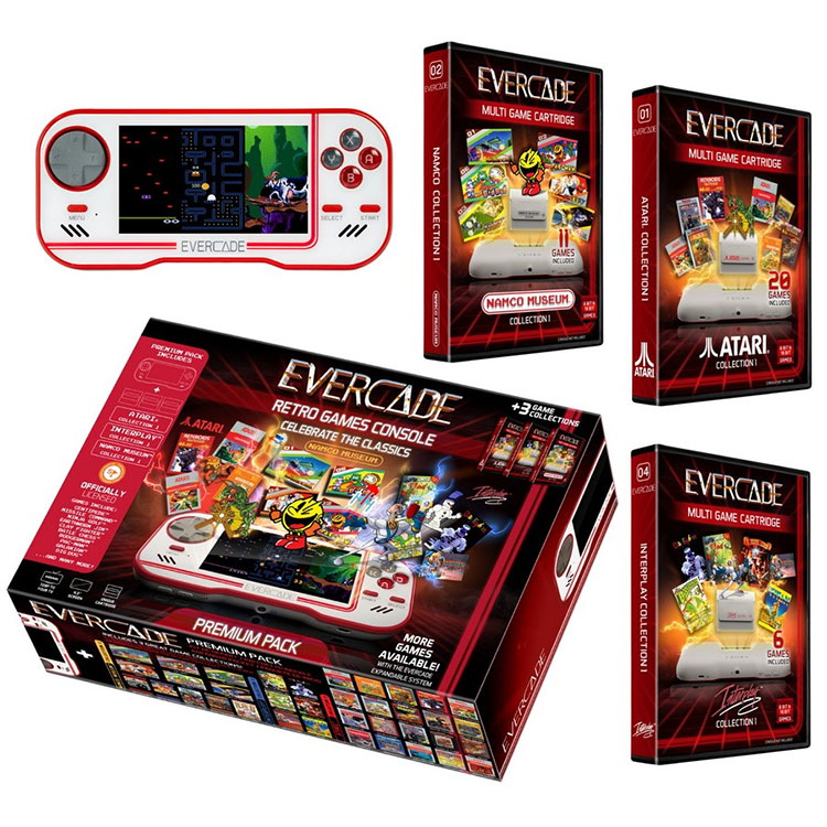 El próximo 12 de junio de 2020 llegará al mercado Evercade, una nueva consola portátil para videojuegos retro, que cuenta con juegos únicos de los principales editores mundiales de juegos y consolas en sus llamativos cartuchos exclusivos multijuego. La nueva plataforma se comercializará en dos modalidades, el Starter Pack que incluye el cartucho Namco Museum Collection (con 11 juegos) con un precio de venta recomendado de 69,99 € y el Premium Pack que incluye tres cartuchos: Namco Museum Collection (con 11 juegos), Interplay Collection (con 6 juegos) y Atari Collection (con 20 juegos) con un pvpr de 89,99€. Con una pantalla de 4.3″, la consola se puede conectar a la TV con gráficos en HD.