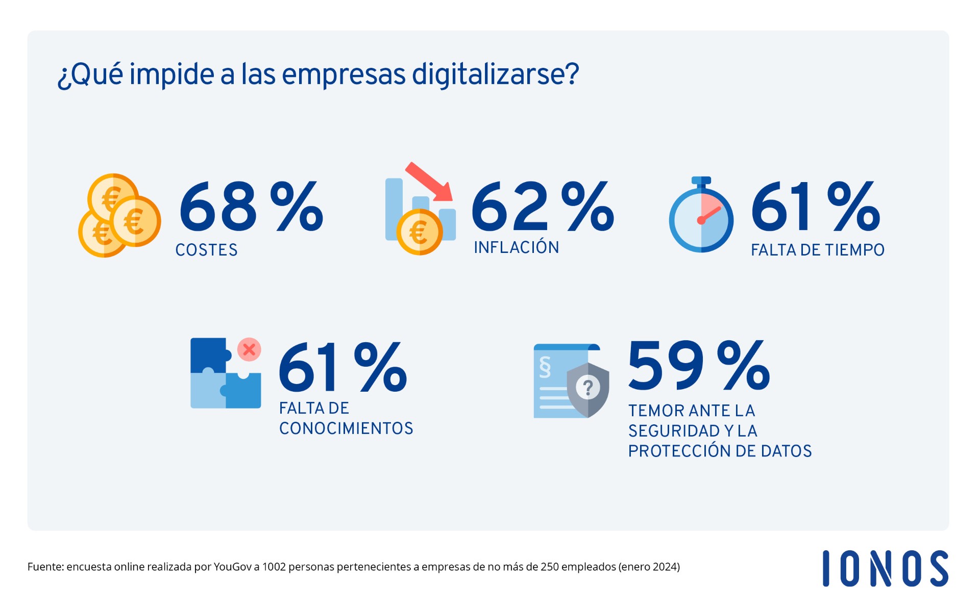 El 88% de pymes españolas continúan dando una gran importancia al proceso de digitalización, situándolas a la cabeza de otros países europeos como Francia, Alemania o Reino Unido por tercer año consecutivo. Así lo indica el nuevo estudio de YouGov para IONOS, en el que un 88% de las pymes encuestadas en España considera la digitalización como bastante importante o muy importante para la viabilidad de sus negocios. Esta cifra se mantiene estable respecto al estudio del año pasado. En este imparable proceso de modernización, destaca que el 65% de las pymes españolas considera el uso de herramientas de IA, como ChatGPT, una opción para sus empresas, de las que el 22% o ya las utiliza o está estudiando su implantación.