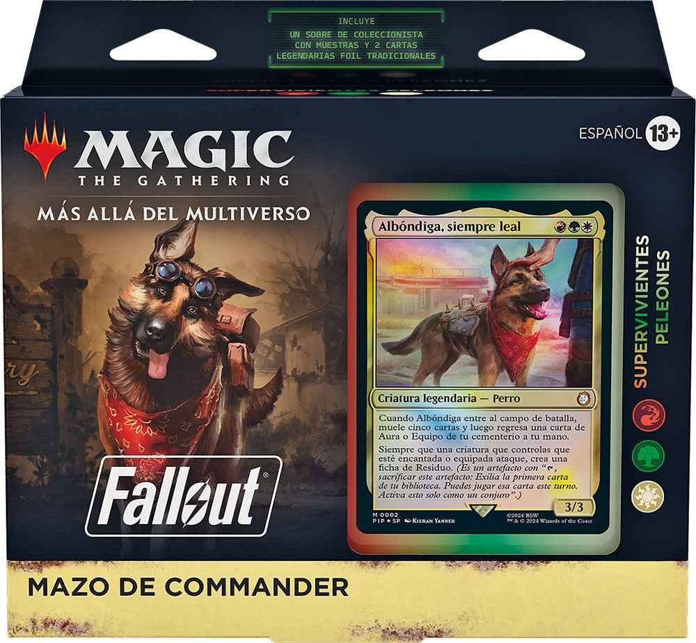 Desde 1997, los jugadores han viajado a inolvidables páramos postnucleares a través de los juegos de Fallout®. Ahora, Magic: The Gathering® celebra el increíble legado de esta franquicia con cuatro nuevos mazos de Commander que muestran lo mejor de Fallout, rindiendo homenaje a los personajes y objetos únicos de los juegos. Y sí, ¡esto incluye a nuestro querido Albóndiga!