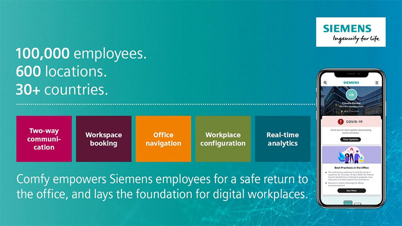 ‘Comfy’ es la nueva aplicación desplegada en unas 600 ubicaciones de la compañía en todo el mundo, que ofrecerá sus servicios a partir de octubre de este año. El objetivo es lograr una vuelta segura de los empleados al lugar de trabajo tras la pandemia y establecer la base para un trabajo más ágil y flexible en el futuro.