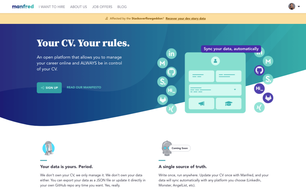 Manfred, agencia de talento de Sngular, ha anunciado hoy el lanzamiento internacional del MAC (Manfred Awesómic CV). Se trata de la primera plataforma online del mundo para la gestión de currículums de profesionales de la tecnología que permitirá, en un primer momento, la subida y descarga de sus datos, así como la vinculación a su repositorio de GitHub, y en un futuro, la sincronización de sus datos con varias plataformas o descargarlos en un Json. De esta manera, se libera a los desarrolladores de las limitaciones de un currículum tradicional y permite a los usuarios tener un control total sobre sus datos, sin perderlo en ningún momento al subirlos a plataformas de empleo.