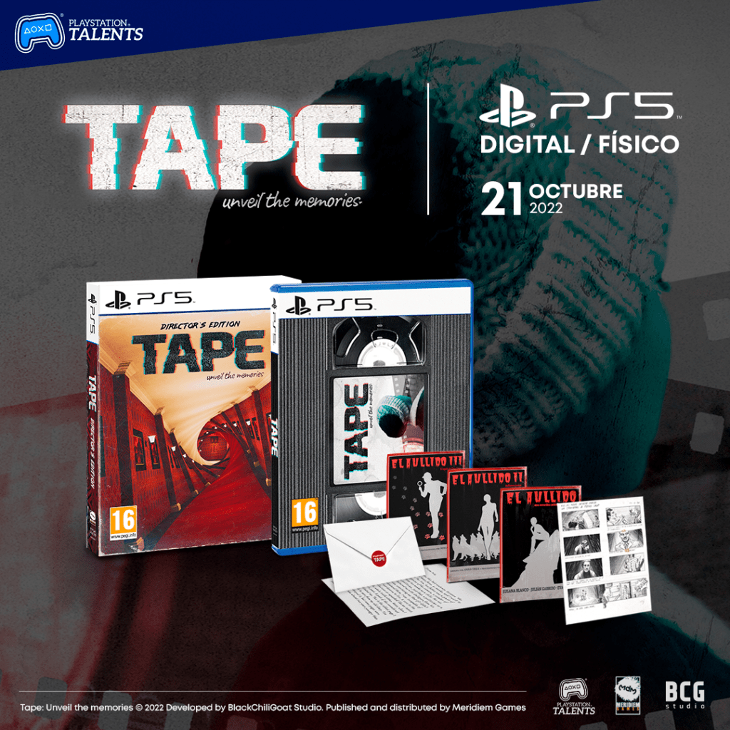 Desde hoy, el thriller de misterio indie madrileño TAPE: Unveil the memories ya está disponble en edición física y digital para PS5™ ambas con todo el potencial de la consola de última generación: resolución 4k, vibración háptica, gatillos adaptativos y un envolvente sonido 3D en DualSense.